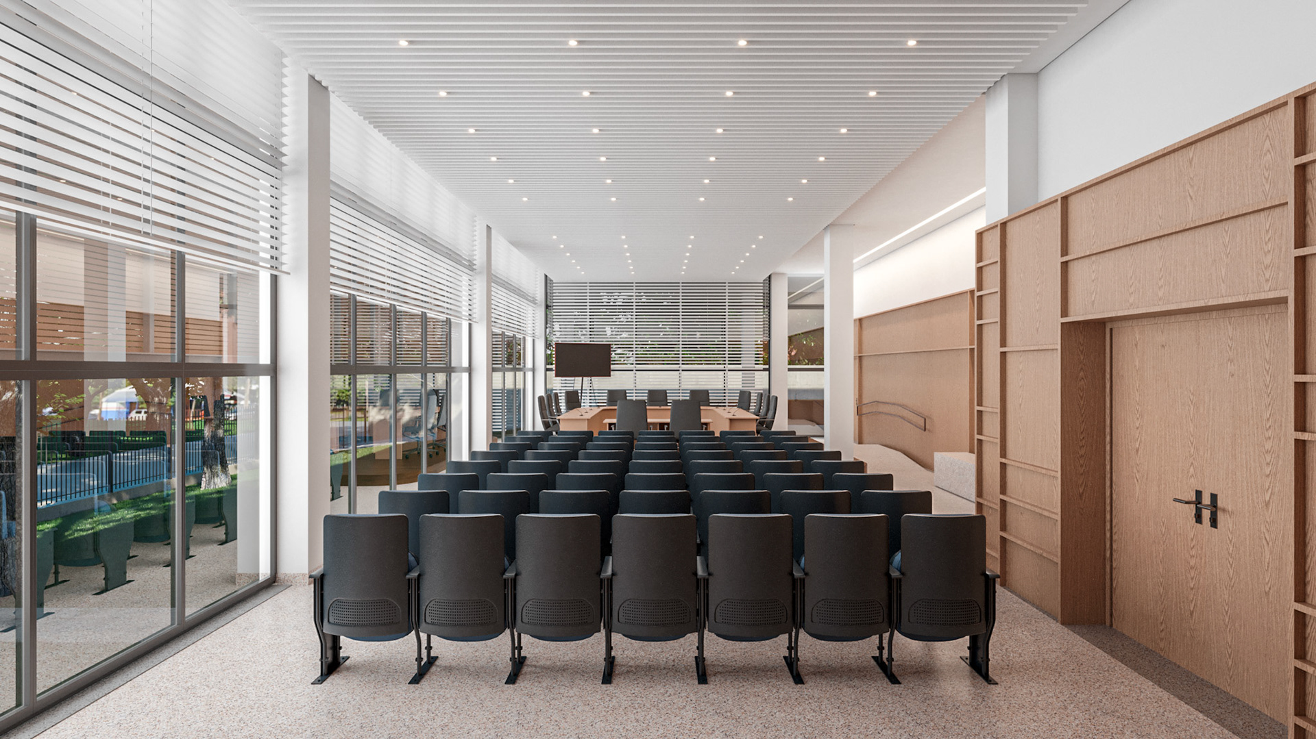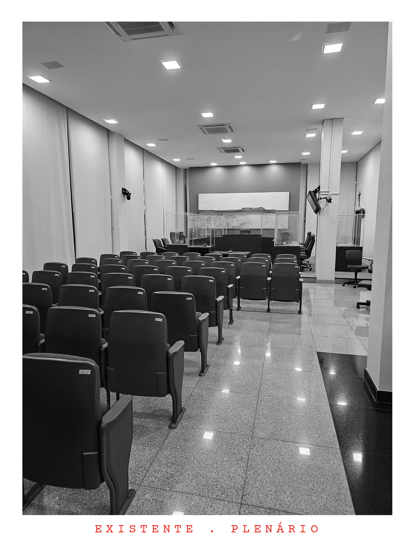 A proposta para os ambientes que compõem o Plenário busca trazer clareza e identidade visual, maior unidade entre os ambientes e adequações que tragam maior integração e aproveitamento espacial. A partir disso, utilizamos estratégias projetuais que garantam melhorias em diferentes esferas: funcional, formal e técnica. Assim, atentando às demandas indicadas pelo edital, aos condicionantes que os próprios espaços sugerem e, através dos estudos e análises do local, busca-se reforçar os pontos positivos da configuração atual e, com cuidado e ponderação, propõe-se readequar aquilo que permite ganhos consideráveis aos espaços.