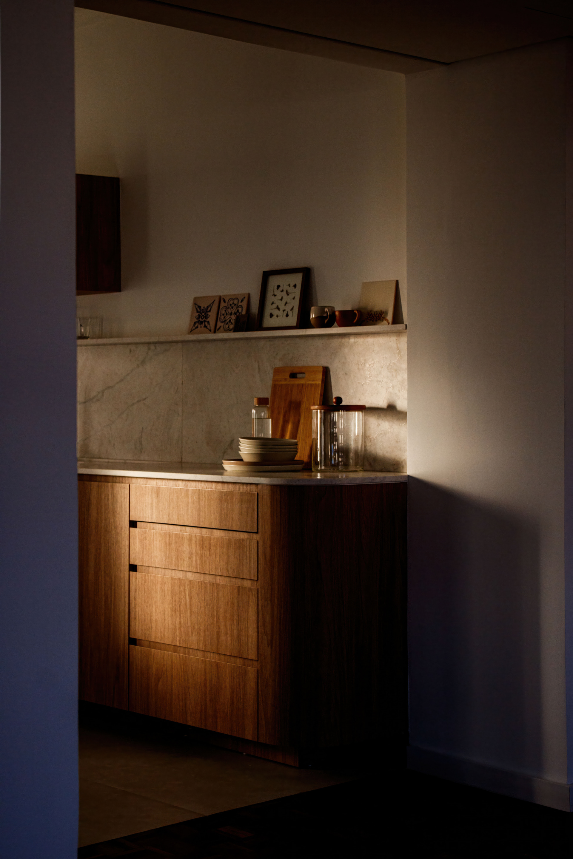 No Apartamento Bordini, um dos desafios foi achar um equilíbrio entre neutralidade, funcionalidade e identidade.
