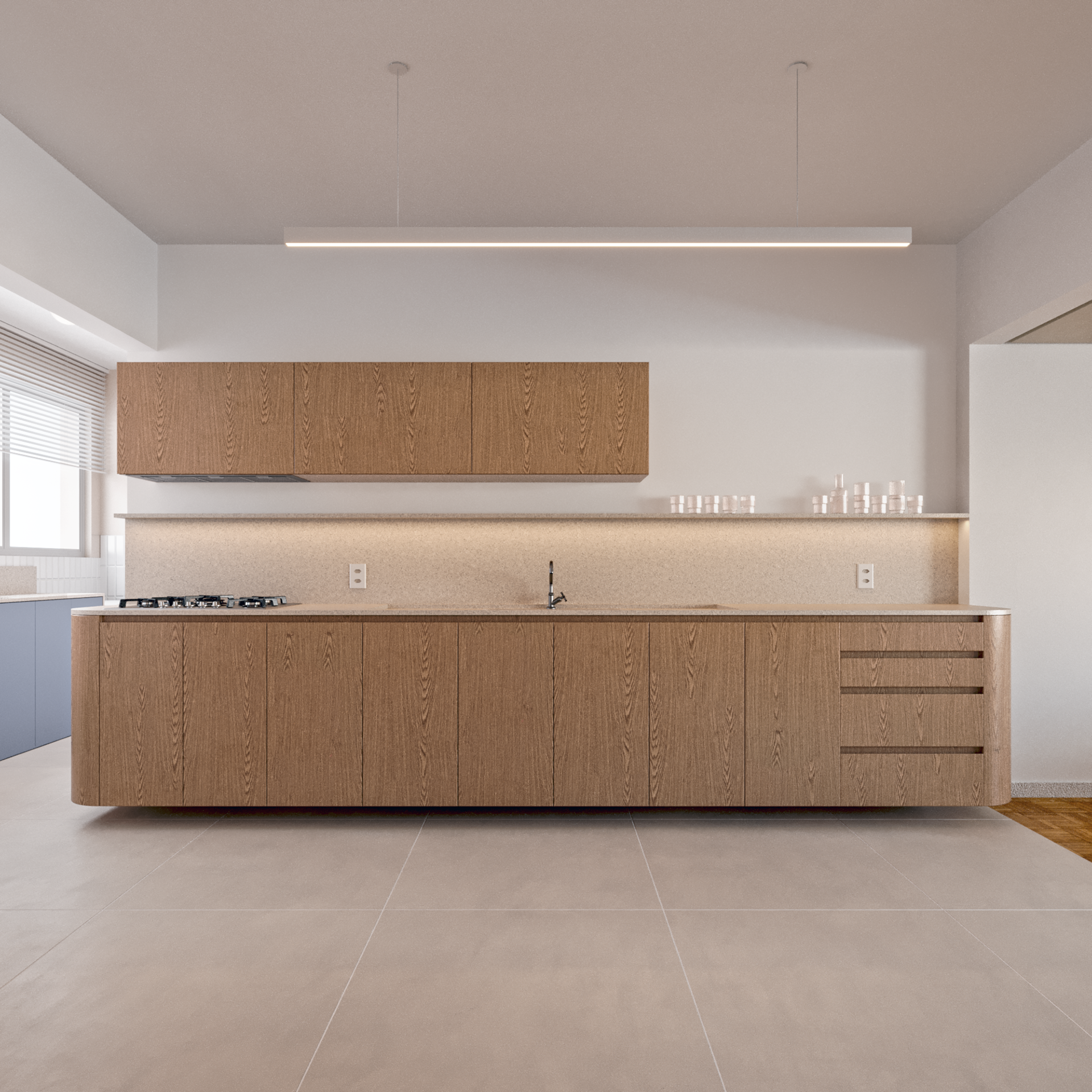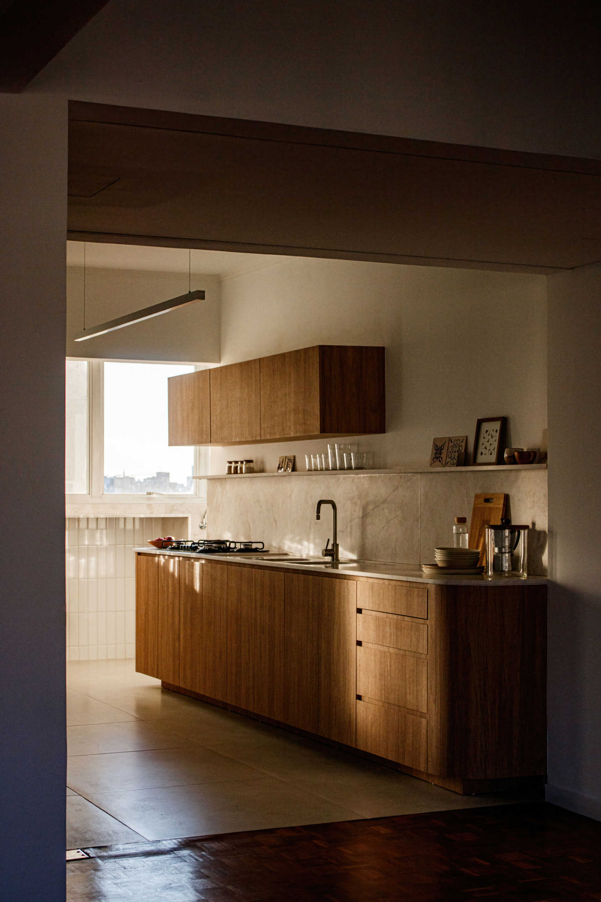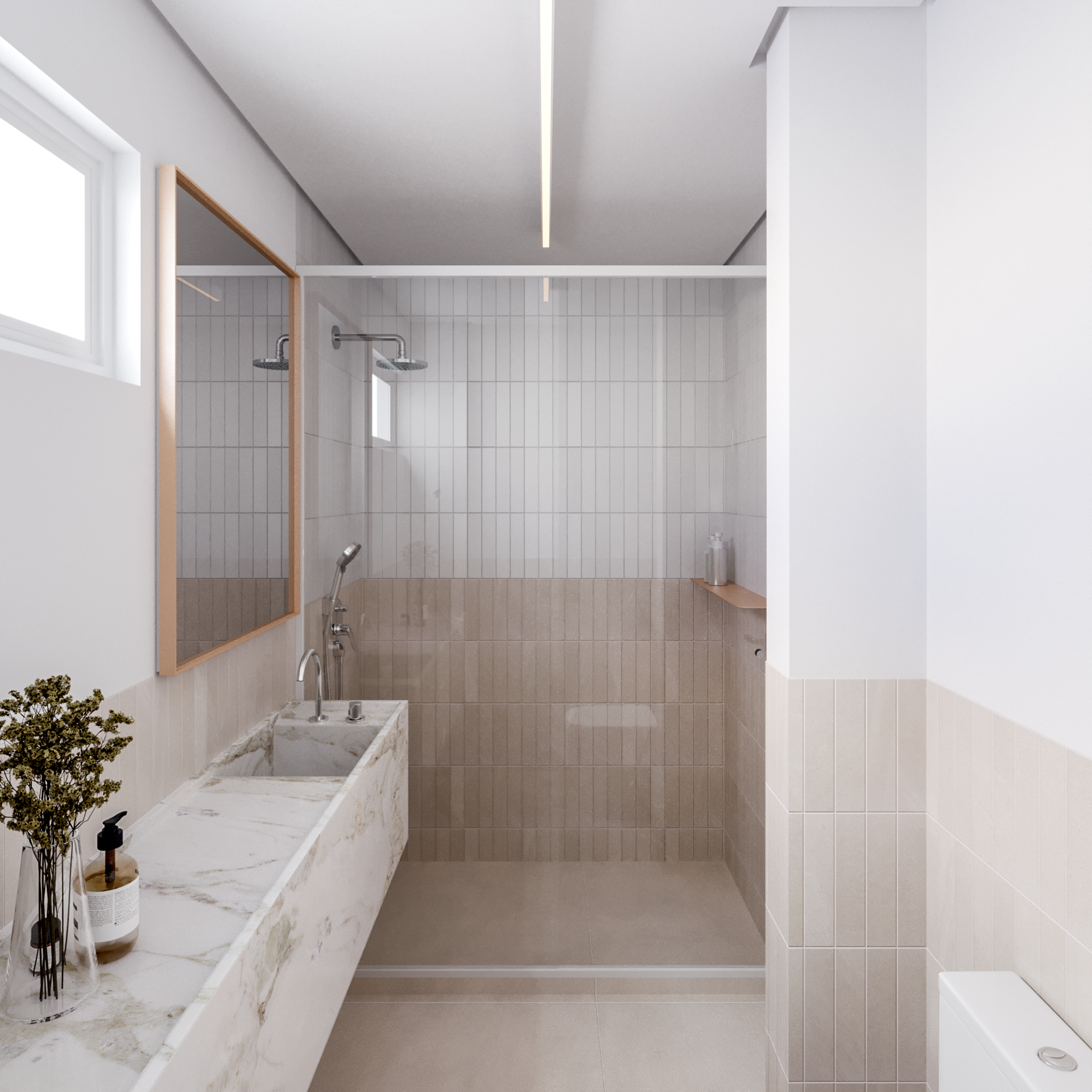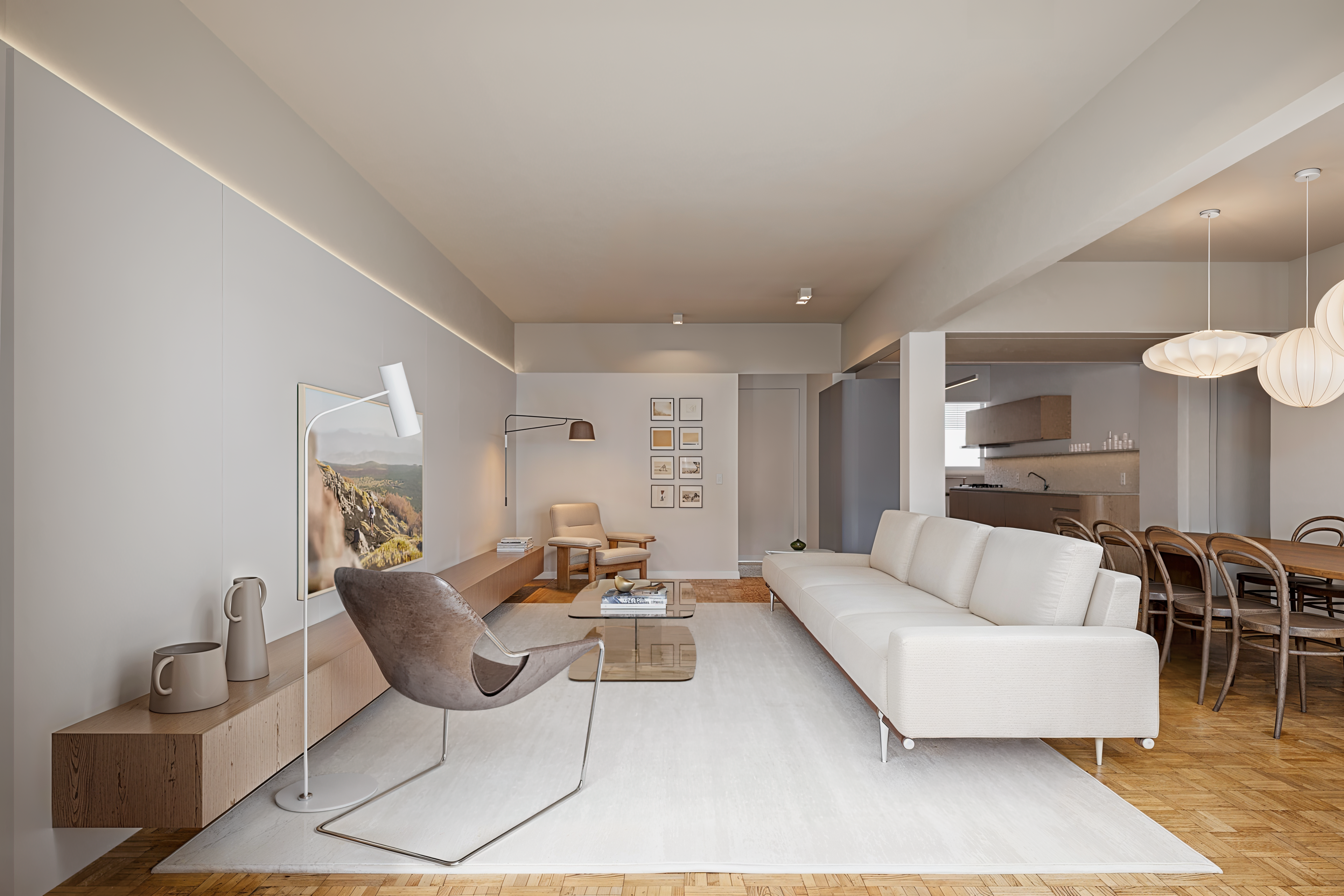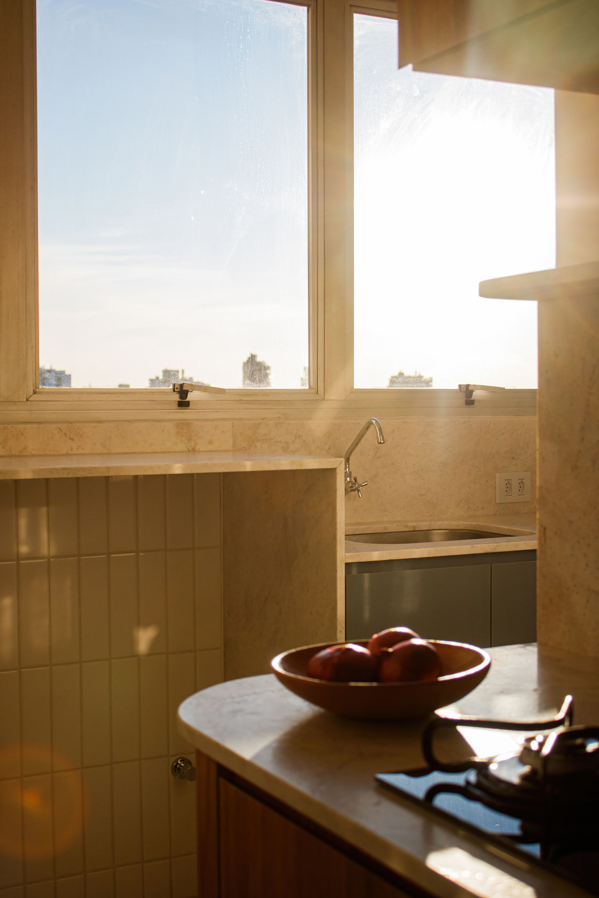 Como o objetivo dos clientes era vender o imóvel, o projeto partiu com intervenções estratégicas que otimizam os espaços, valorizam a luz e a ventilação natural, aliadas a escolhas de novas materialidades atemporais.